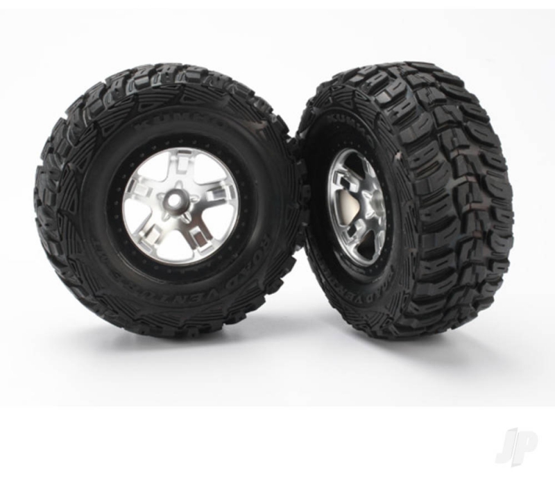 Traxxas Tyre & wheel assembly, glued (SCT satin chrome, black beadlock style wheels, Kumho Tyres, foam inserts) (2) (2WD front) 020334588104