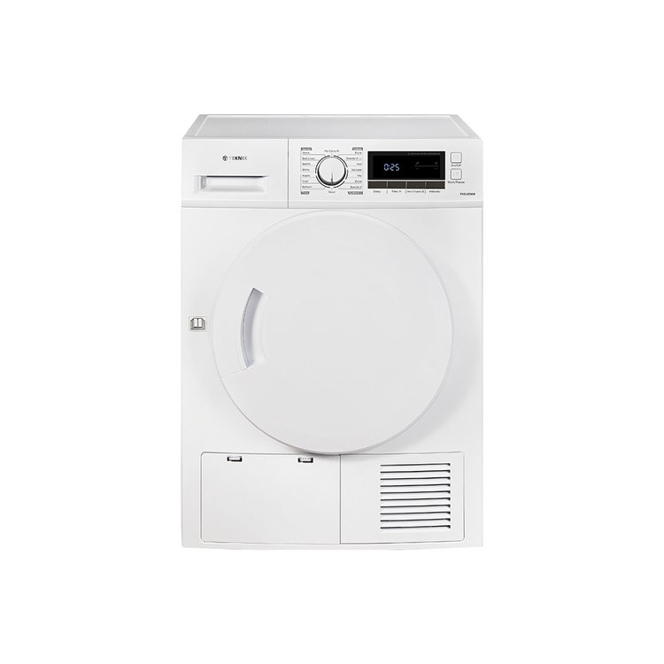 - Product Type: Teknix TKCLED8W 8kg condenser tumble dryer with LED display and reverse tumble, Teknix TKCLED8W white dryer with anti-crease function and 16 drying programs, Teknix TKCLED8W freestanding dryer with B energy rating and child lock, Teknix TKCLED8W with overheat sensor and quiet 69dBA operation, Teknix 8kg condenser dryer with digital controls and compact footprint, Teknix tumble dryer with 3-pin UK plug and easy-clean white finish