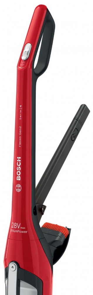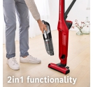To maximise cleaning efficiency, Bosch includes a comprehensive accessory kit with the Bosch BBH3ZOOGB cordless vacuum cleaner for pet hair – red. This includes a flexible crevice nozzle for hard-to-reach areas, a 2-in-1 furniture and upholstery brush for soft surfaces, and an additional brush roll for floor nozzle customisation. These tools are designed to enhance the vacuum’s performance and make it suitable for a wide range of cleaning tasks around the home.