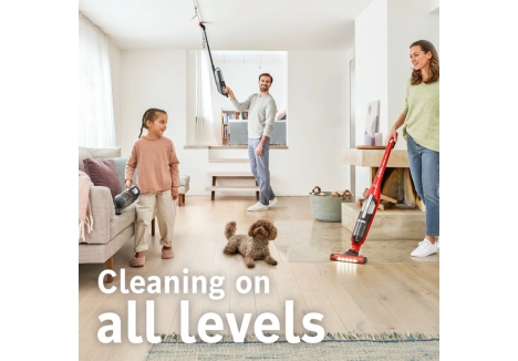 The Bosch BBH3ZOOGB cordless vacuum cleaner for pet hair – red is a high-performance cleaning solution designed for pet-friendly homes. Engineered with Bosch’s trusted Lithium-Ion Technology, this lightweight 2-in-1 stick vacuum offers powerful suction, extended runtime, and versatile usability. Whether you're tackling stubborn pet hair on carpets or reaching tight corners with the handheld unit, the Bosch BBH3ZOOGB Serie 4 ProAnimal 2-in-1 stick vacuum delivers consistent results across all surfaces. Its tornado red finish adds a bold touch to your cleaning arsenal, while the bagless design and RobustAir filtration system ensure hassle-free maintenance and cleaner air.
