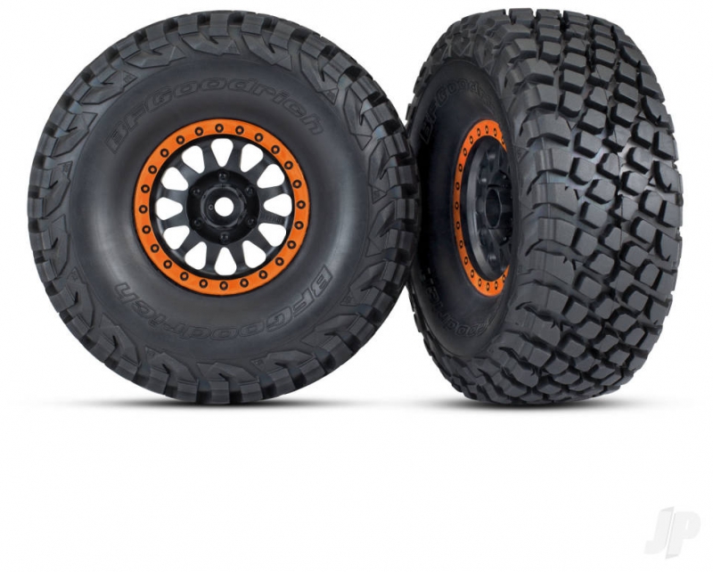 Traxxas Tyres & wheels, assembled, glued (Method Race Wheels, black with orange beadlock, BFGoodrich Baja KR3 tyres) (2) 020334069740