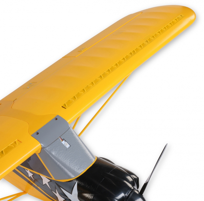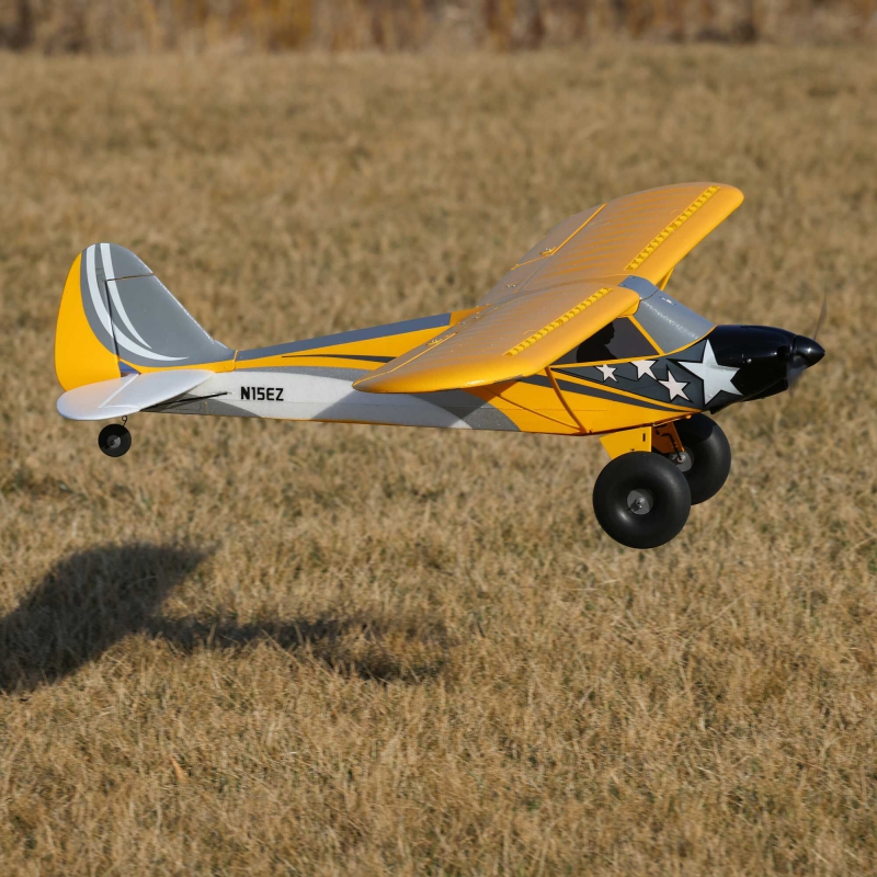 And the fun doesn't stop after you learn how to fly! In the Experienced Mode, the Carbon Cub S 2 is capable of performing aerobatic maneuvers including loops, rolls, inverted (upside down) flight, and more. You can even use the same DXS transmitter that's included with the RTF Basic version, along with the same battery and charger you use for the Carbon Cub, to fly a variety of BNF Basic version "Next Step" aircraft including the E-flite® T-28 Trojan 1.1m, the Valiant 1.3m and others!