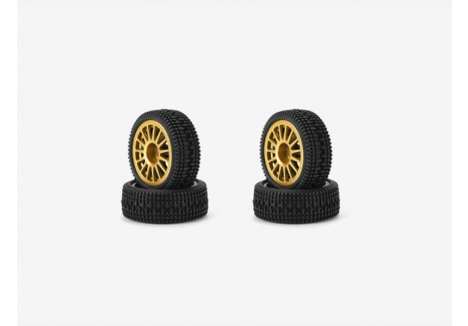 - 4 × Pre-mounted tyres on rally-style wheels – complete set for front and rear installation