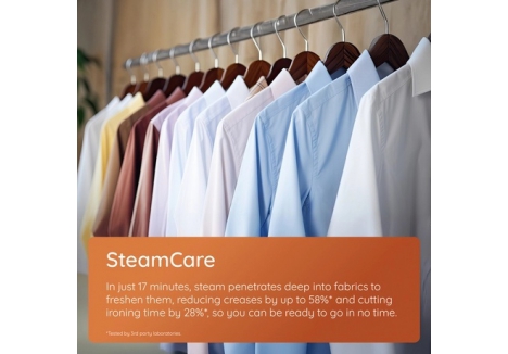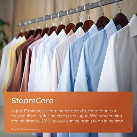 - SteamCare – refreshes lightly worn clothes in 17 minutes