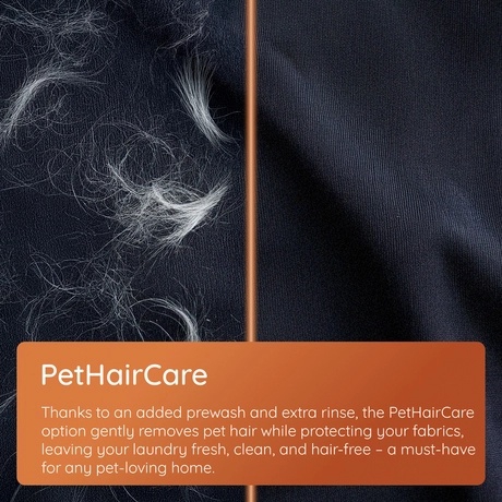 - PetHairCare cycle – removes stubborn pet hairs with prewash and extra rinse