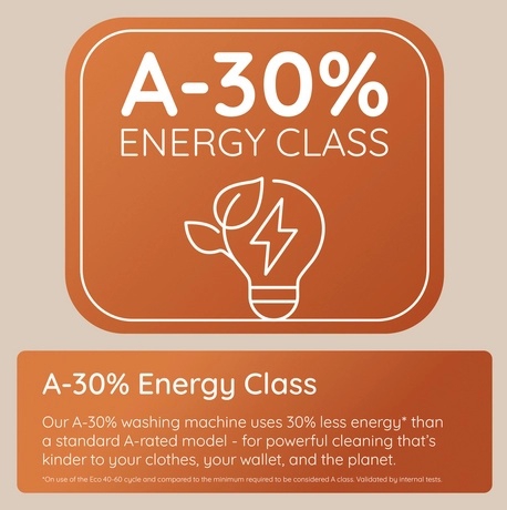 - Energy Efficiency Class: A – low energy consumption with A-30% rating