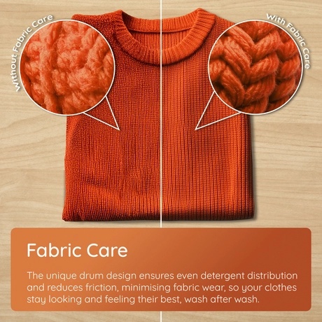 - Fabric Care – gentle, low-friction washing to extend garment life