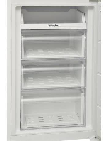 The sliding freezer tray in the Sensis RFCMI0154EW fridge freezer with adjustable shelves for compact kitchens adds a layer of convenience to frozen food storage. It allows you to access items stored at the back of the freezer without having to remove other contents. This feature improves organisation and makes meal planning more efficient, especially for families who store a variety of frozen goods. The tray’s smooth operation and durable construction ensure it remains functional over time, enhancing the overall usability of the freezer compartment.