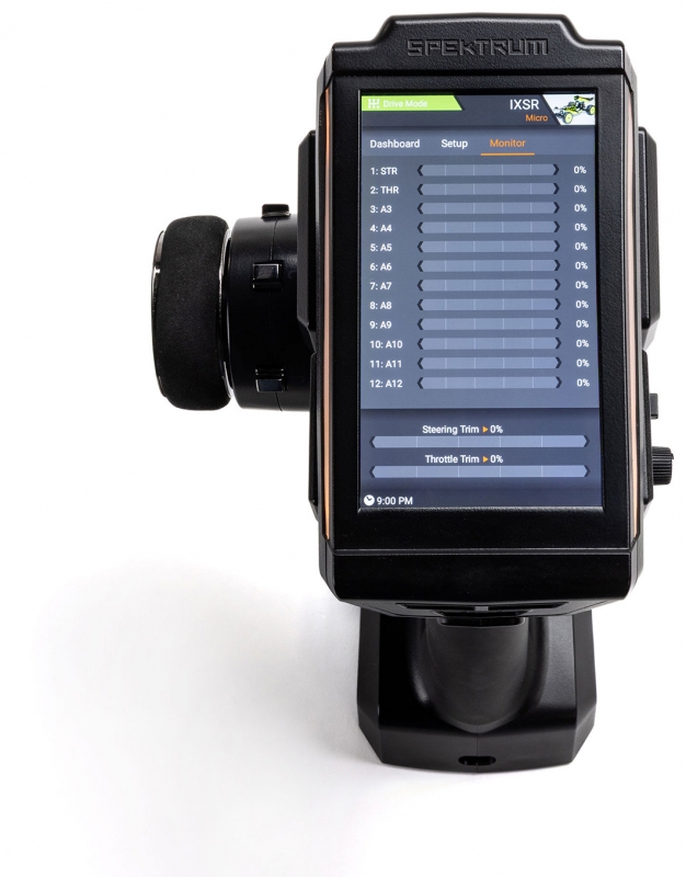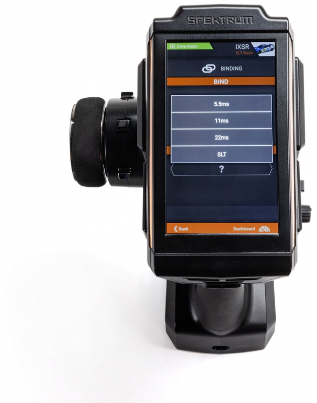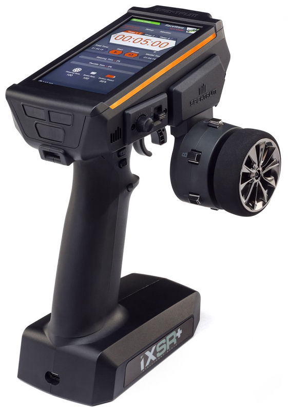 The Spektrum™ iXSR+ offers the best features and capabilities for accomplished drivers who handle the most advanced, high-performance vehicles. Its improved ergonomics, connectivity, and programmability are ready to take your control to the next level. This powerful, intelligent, and feature-packed transmitter includes Spektrum Smart Technology, 12 channel capability, SLT compatible with Dual Protocol, a 4.5-inch colour touch-display with leading-edge Android technology, customizable model setup, drag race control, and more.