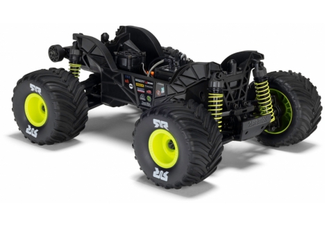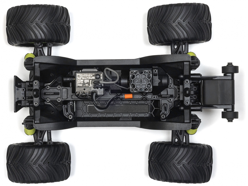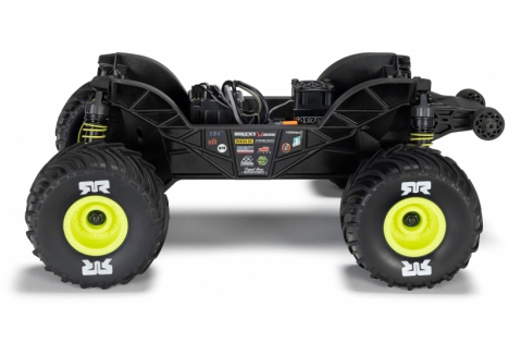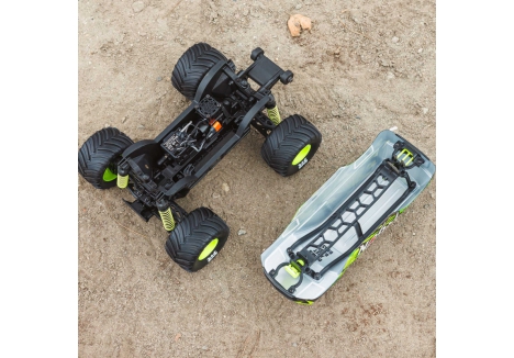 The GORGON GROM 4X4 RTR Monster Truck body snaps onto the chassis easily, quickly, and securely, and comes off with a simple press-and-release. With no tiny clips to force into place, it's a body attachment system that's perfect even for young bashers.