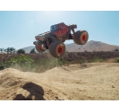 The QUAKE GROM's suspension is tuned to leap, land, and keep rolling. High-travel shocks soak up jumps and bumps. The deep tub chassis keep out rocks and debris, so you bash harder without worrying about what's in your path. A high centre of gravity gives the QUAKE GROM that telltale monster truck stance, letting it clear gravel and dirt piles with ease. Got a driveway, a dirt patch, or an empty stretch of garage? The QUAKE GROM handles them all, and its size means you can have fun indoors too—when the weather turns or you just want to keep bashing.