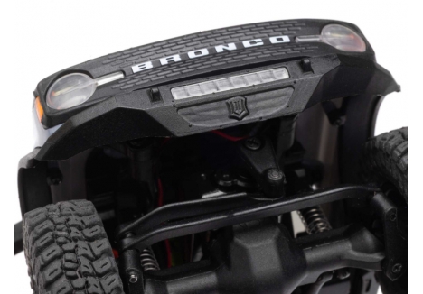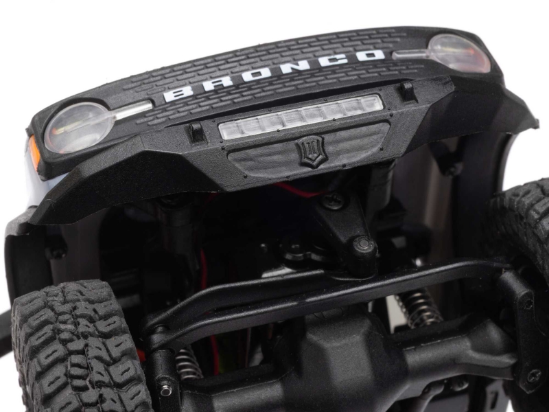 The Axial SCX30 Ford Bronco RTR has a high-performance chassis with an angled skid plate to help you slide over challenging obstacles - a feature usually found only in comp crawlers. Ramped axle housings and high clearance links also help to avoid dragging and hangups, while the forward weight bias improves climbing stability.