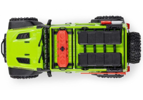 Surrounding that trail-ready engineering is a detailed ABS hard body that delivers amazing scale realism for its compact size. An authentic recreation of the full-size, 4-door Unlimited truck, the SCX30 Jeep Wrangler JLU body is complemented by front and rear LEDs and officially licensed Yokohama Geolandar X-MT tyres on Black Rhino Atlas wheels. The soft compound tyres with foam inserts provide all the traction needed for outdoor action on rocks and dirt or for crawling across a desktop, table, or cluttered floor. Turn any space into your personal Rubicon trail!