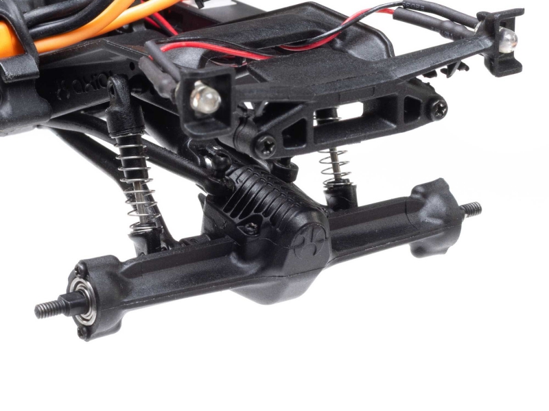 Performance on the rocks gets another boost from the climbing stability of the SCX30 platform’s forward weight bias. And it has plenty more to offer, from damped shocks, full ball bearings, and a powerful Axial 88T motor to dependable Spektrum electronics that are mounted low in the chassis for the best center of gravity.