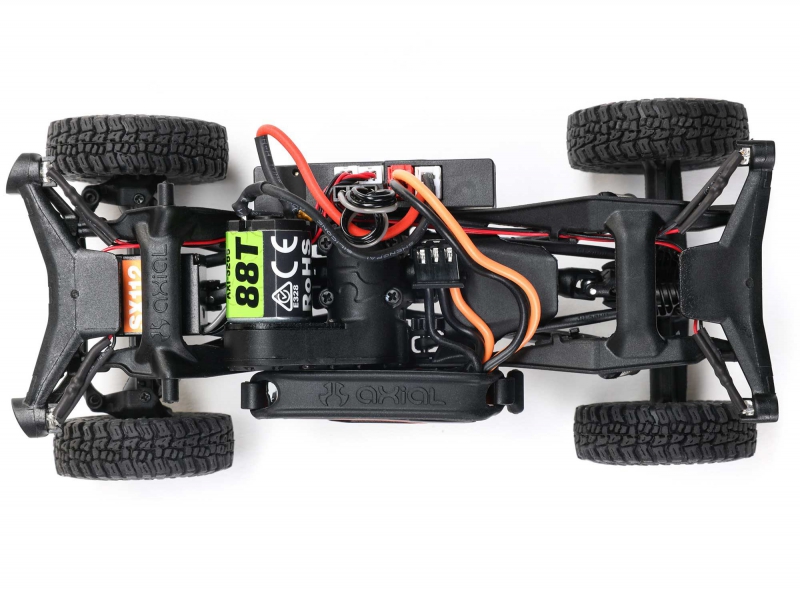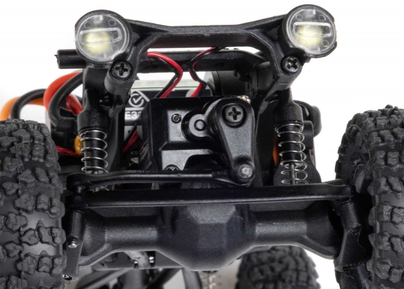 Performance on the rocks gets another boost from the climbing stability of the SCX30 platform’s forward weight bias. And it has plenty more to offer, from damped shocks, full ball bearings, and a powerful Axial 88T motor to dependable Spektrum electronics that are mounted low in the chassis for the best center of gravity.