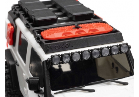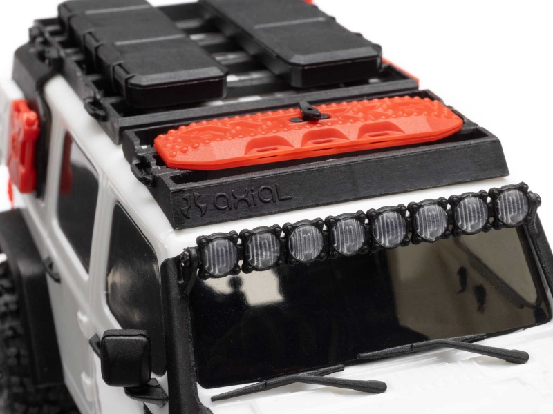Though small, the SCX30 Jeep Wrangler JLU RTR doesn't come up short on scale realism. The injection moulded ABS hard body is loaded with details for authentic scale looks. Front and rear LEDs are included, as are moulded overland accessories and extra comp fender set for body customizing.