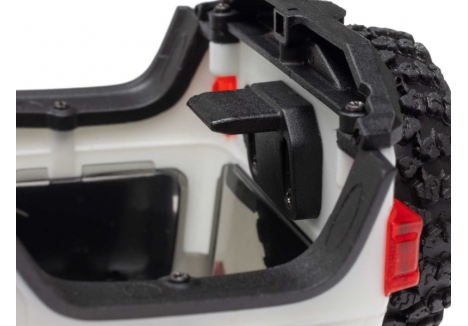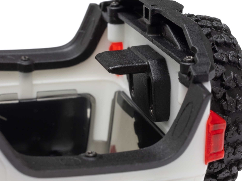 The capabilities of the SCX30 Jeep JLU are like nothing you’d expect from a sub-micro crawler. Its angled skid plate, for example, lets you slide easily over challenging obstacles - and is a feature usually found only in competition crawlers. Ramped axle housings and high clearance links also help to avoid dragging and hangups.