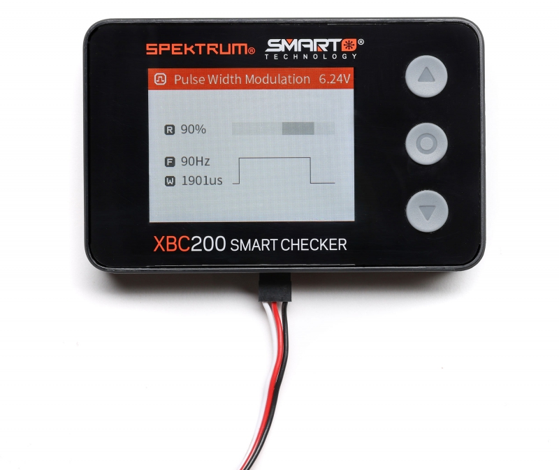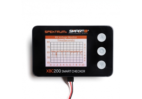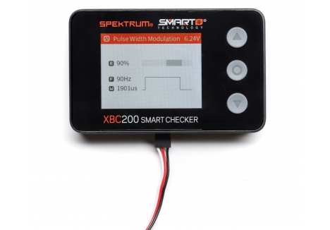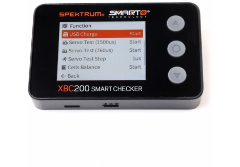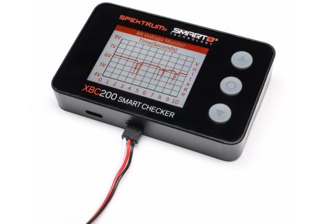 The Spektrum Smart Battery Checker and Servo Tester is a must have tool for any pilot or driver's toolbox. This battery checker and servo tester has even more functionality than previous generations. More than a battery checker, it features a built-in cell balancer, PWM checking, a voltage checker for receivers that graphs voltage over time, integrated servo tester and driver, connections for IC2, IC3, and IC5, and Spektrum Smart battery connectivity.