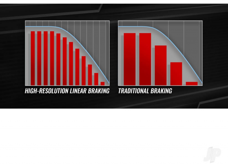Velineon VXL-4s High-Resolution Linear Braking is a patent-pending Traxxas innovation that delivers next-level smoothness and precision. The High-Resolution communication loop allows instant response to the driver's input for powrful and intuitive linear braking feel. From feather touch speed correction to full-power late braking to overtake on the inside line of a corner, the driver stays fully connected and in control for a competitive edge on the track. The optional Traxxas Link app adds easy control over brake force to tune for different needs and conditions.