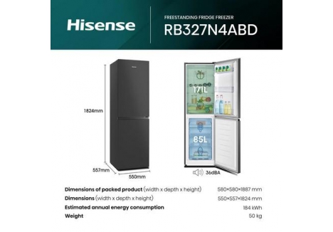 Hisense RB327N4ABD 55cm 60/40 Frost Free Fridge Freezer - Black