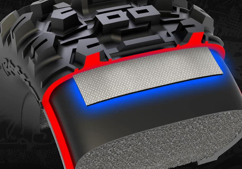X-Maxx Ultimate's belted Sledgehammer tyres deliver game-changing stability and control whether you're slinging mud or setting speed records. The wide, open-block tread design won't clog up with dirt or debris and the lightweight belting maintains the tyre's shape for a larger contact patch, more grip, and responsive handling at any speed.