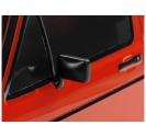 Separate plastic parts moulded in black realistically depict side mirrors and bumpers