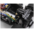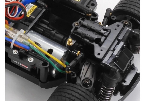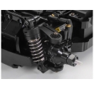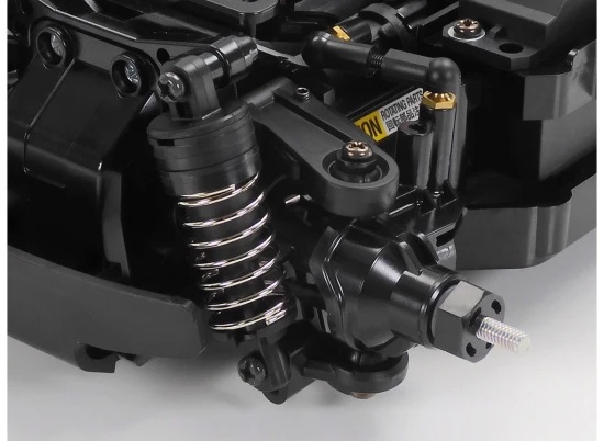 The compact, 2WD MB-01 chassis gives a choice of three types of wheelbases, and a front- or rear- wheel drive system. Without removing battery pack, motor, and R/C equipment setups from the centre frame, simply change attachment directions of final gears and steering linkage to switch between front- and rear-wheel drive; low or high motor position can be chosen for rear-wheel drive cars. The 4-wheel double wishbone suspension features symmetrical structure and friction dampers. Unitized sections such as motor mount, final gears and suspension facilitate ease of assembly and effective maintenance.