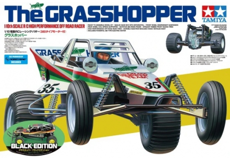 To celebrate the 40th anniversary since the first sales of The Grasshopper and The Hornet, Tamiya welcomes The Grasshopper Black Edition. The product itself is the same as ?the ?normal Grasshopper but with a ?black body.