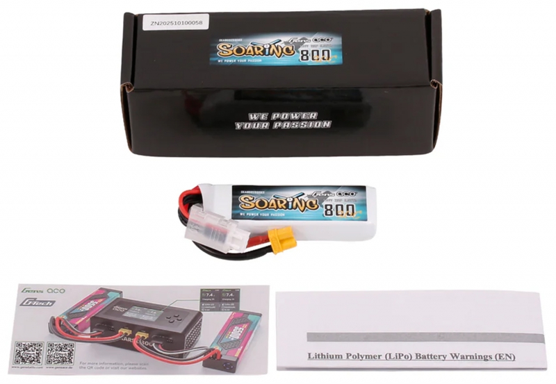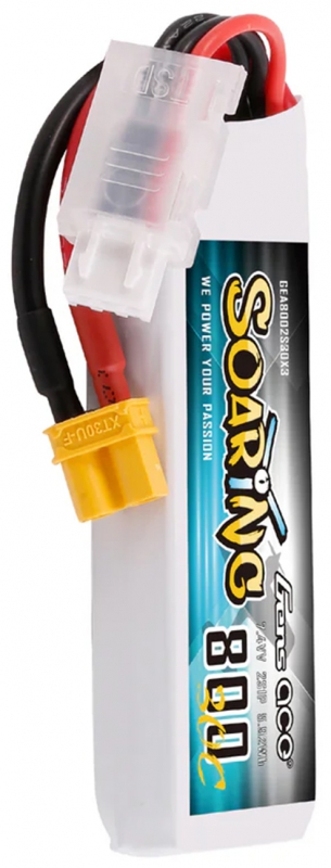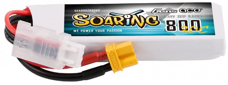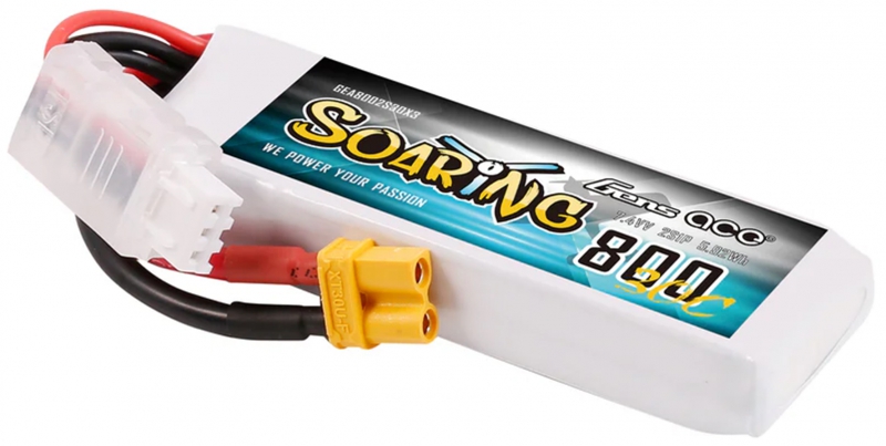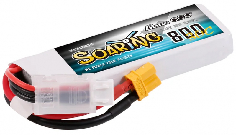 Gens ace 800mAh 2S 7.4V 30C Soaring Lipo Battery Pack with XT30 comes with strong body and very reasonable price. This battery is also very easy to balance. It's the high quality and reliable power you need.