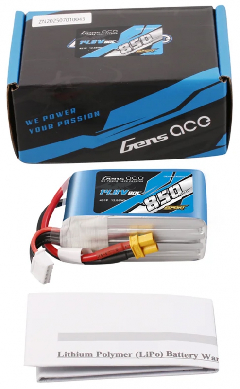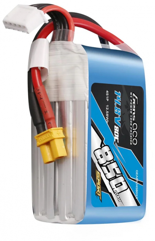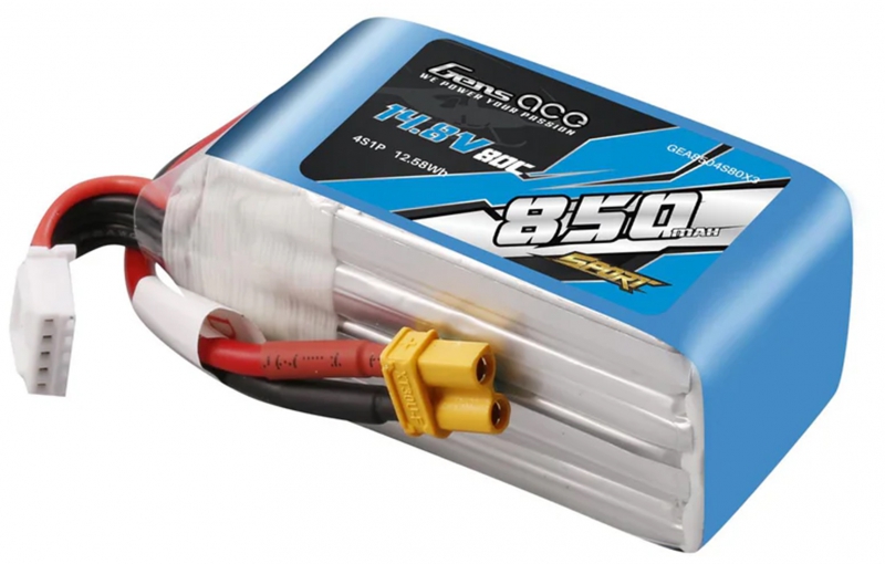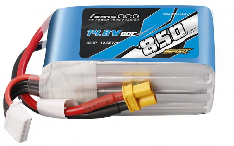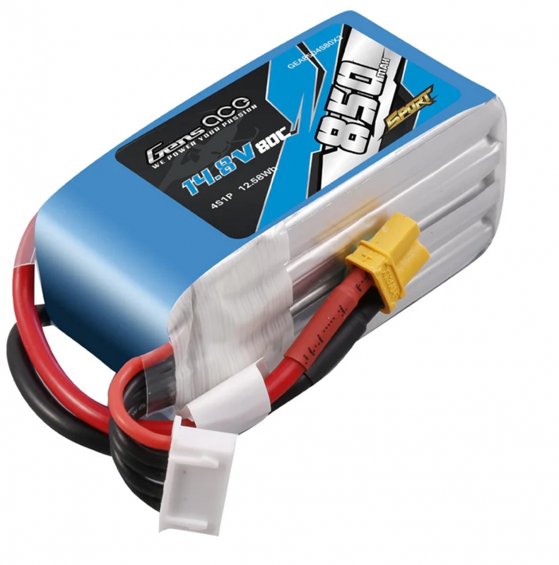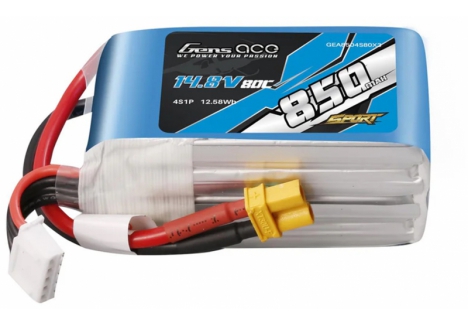 Gens ace 850mAh 14.8V 4S1P 80C Lipo Battery is designed for F5J and performance motorgliders, particularly small sizes. They are in true 80C discharge rate, and only weighted 96g. Gens ace 850mAh 4S lipo can provides your drone long enough flying time whilst adding only very little weight to your RC helis.
