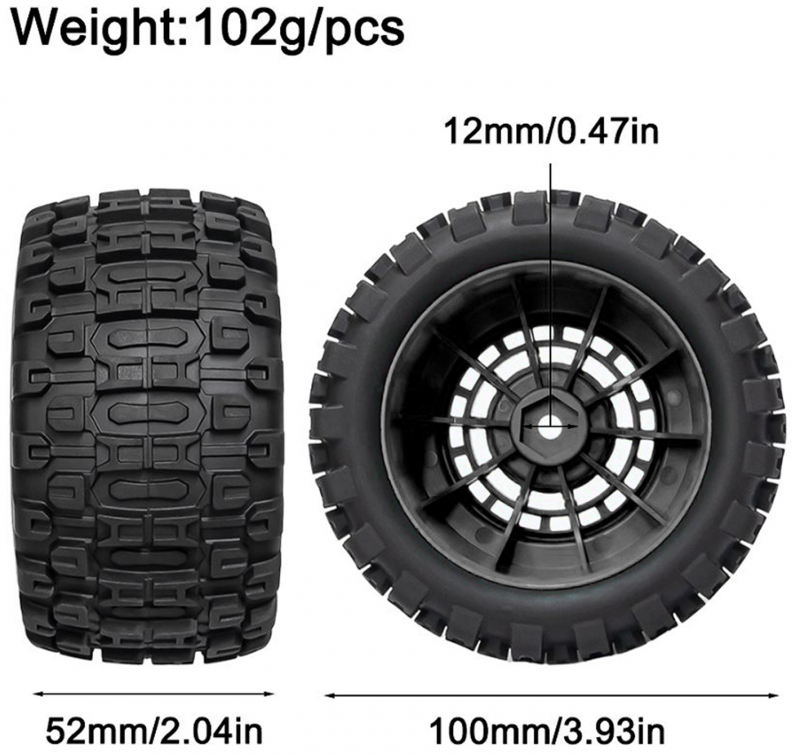 RCO 1/16 MT Wheel & Tyre, Mini Maxx/XRT, Mini LMT Pk4 G-RCO-UN13BK