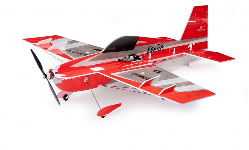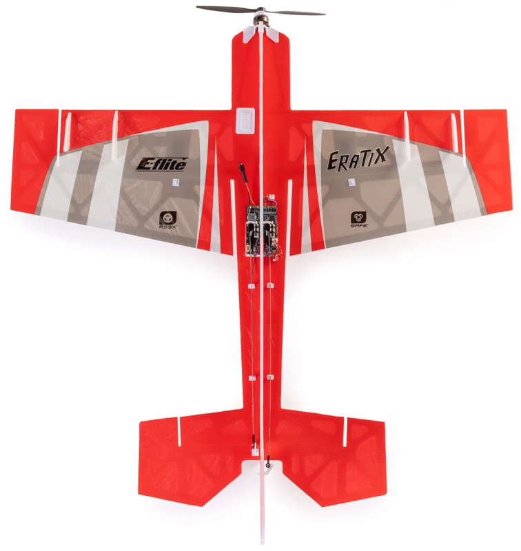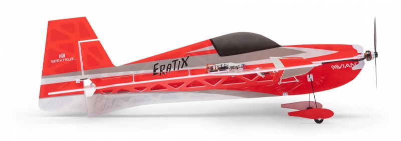 The E-flite® Eratix 3D FF (Flat Foamy) 450mm offers the aggressive aerobatic plus smooth sport and slow-flying performance of flat foam models – without all the hassles of buying components for and building one! It arrives fully factory assembled and ready to bind to your compatible Spektrum transmitter, allowing you to fly in almost no time. Inspired by the UMX™ Extra 300 and Yak 54 flat foamy models, its laser-cut and composite reinforced airframe makes it light enough to fly extreme 3D manoeuvres indoors in spaces no larger than a living or conference room, or almost anywhere outdoors. The factory-installed brushless outrunner motor with a prop saver is compatible with popular 2S 280–350mAh batteries. It's also equipped with expertly tuned AS3X® and SAFE® Select technologies, plus it provides real-time battery voltage and other telemetry information to compatible transmitters. This makes it a versatile addition to the hangar for a wide variety of intermediate to experienced pilots!