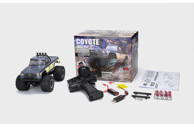 Each 2.0 Spec vehicle has been equipped with a new, faster MT Spec Carisma Motor, offering double the power of our existing power plant with both Wheel speed and Torque. We've also redesigned the ESC software to offer a more traditional, bashing orientated; Forward, Reverse and Brake profile. But that's not all, we've also changed the gearing to work in harmony with the MT Spec Electrics to create what we feel is the ultimate in 1/24th Micro Monster Truck.