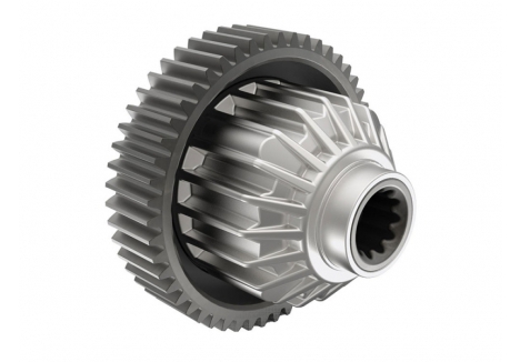 Torque is transferred through a full-time, shaft-driven four-wheel drive system. The driveline incorporates a splined aluminium centre driveshaft connected to a Torque-Biasing Centre Drive unit, which distributes power and absorbs driveline shocks. Sealed, silicone fluid-filled differentials contain large module ring and pinion gears. The primary gear set consists of a machined, hardened steel pinion and spur gear with a 1.0 metric pitch. Power is delivered to the wheels via heavy-duty steel CV driveshafts and machined aluminium stub axles, which connect to 24 mm splined wheel hexes.
