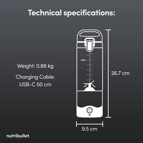 • Portable blender form factor optimised for on?demand, on?the?go nutrition across varied environments