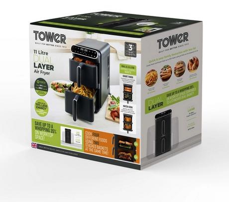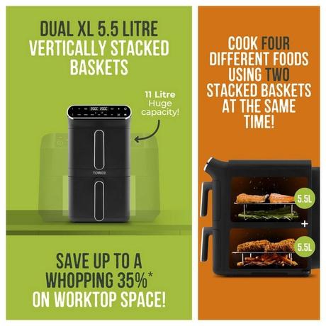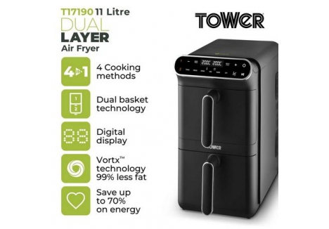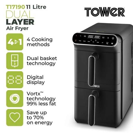 Buy Tower T17190 Vortx 11L Dual Layer Air Fryer Black for coordinated, healthier cooking at home