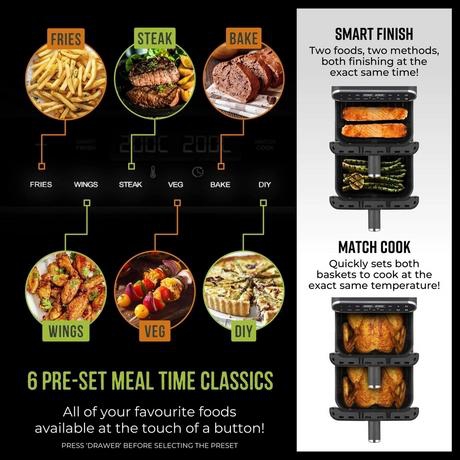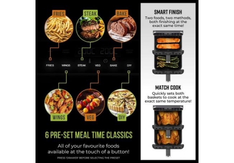- Smart Finish + Match Cook - finish baskets together or mirror settings for balanced results
