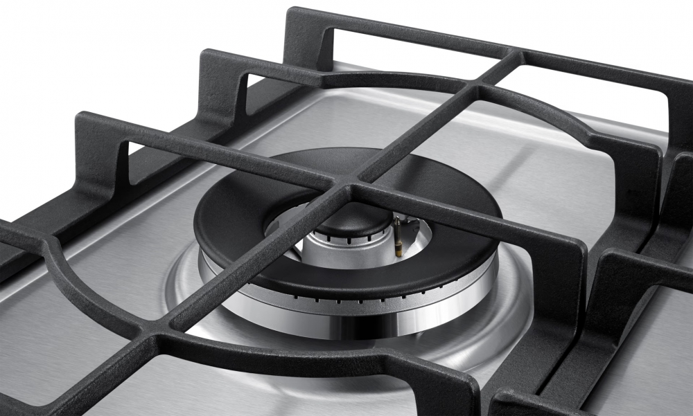 Cast-iron strength and easy maintenance on Samsung NA75J3030AS/EU 75cm 5 Burner Gas Hob Stainless Steel