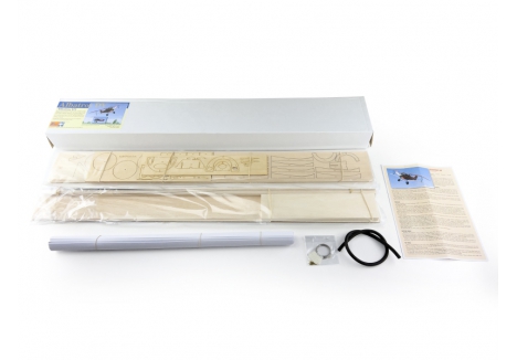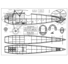 Includes balsa, plywood and basswood parts for fuselage sides, formers, bulkheads, wing ribs, trailing edges with rib slots cut, outlines for all flying surfaces, interplane struts, tail skid, fuselage crutch, tail skid, plus smaller handy parts. Fuselage is built on central crutch system.