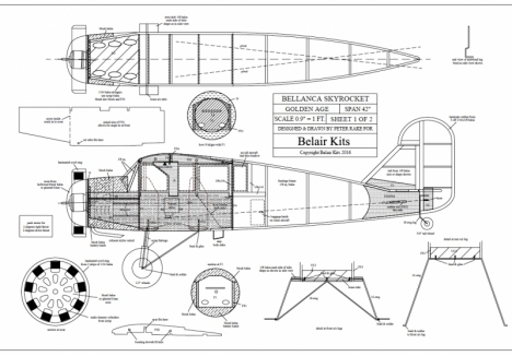 From the Golden Era of flight, comes the elegant Bellanca Skyrocket. With a wingspan of 42 inches, the design is traditional all wood construction and modern CAD design features.