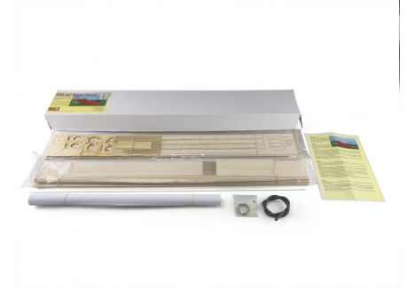 The parts set includes many sheets of graded balsa and plywood sheets, accurately laser cut, plus a three sheet plan and build manual.