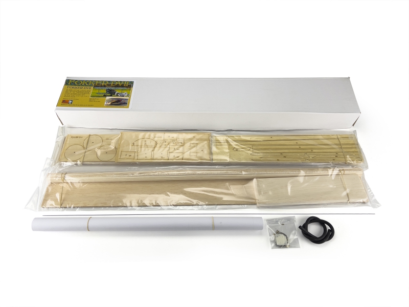 Our Fokker DVII is modelled at Wingspan 38" span and a scale of 1.3"=1ft. It is suitable for 400 size brushless motors and the kit includes laser cut parts in balsa and plywood plus a multi sheet plan.