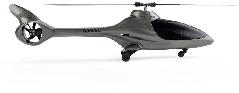 An innovative blend of futuristic looks including a fully moulded and painted EPO body wrapped around a high-performance airframe makes the Blade® Eclipse 360 an eye-catching addition to any RC pilot's collection. It's designed to be capable of smooth hovering plus scale-like and sport flying for intermediate pilots, yet is also capable of aerobatics and even mild 3D in the hands of experienced pilots. The expertly-tuned FC6250HX flybarless control system includes optional-use SAFE technology for angle limits and automatic self-leveling to help prevent crashes in Normal mode, and no limits in all other flight modes - plus Panic Recovery to "bail out" at the push of a button if you ever need it! The powerful brushless main and tail motors are connected to a Spektrum Dual Smart ESC that delivers real-time telemetry data to AirWare™ equipped transmitters, and they're compatible with common and popular 3S 2200-3200mAh batteries. Digital, metal-geared servos, an aluminium head block, and carbon fibre main rotor blades deliver reliable and precise control for the factory-assembled airframe. The lightweight yet durable body is equipped with LED navigation and landing lights along with hard mounting points for the low-profile skids that provide a streamlined "gear up" look, or you can install the included wheel set for a different look and ground handling experience. And it's all delivered in a model that's ready to bind to your favorite Spektrum transmitter to offer a unique helicopter flying experience you can't get anywhere else!