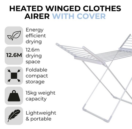 Key features of the Tower T25003 Heated Winged Airer Silver