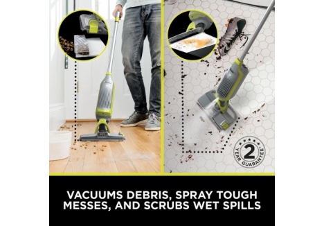 - 2-in-1 vacuum and spray mop - cleans debris and tackles stains in one pass for faster routines