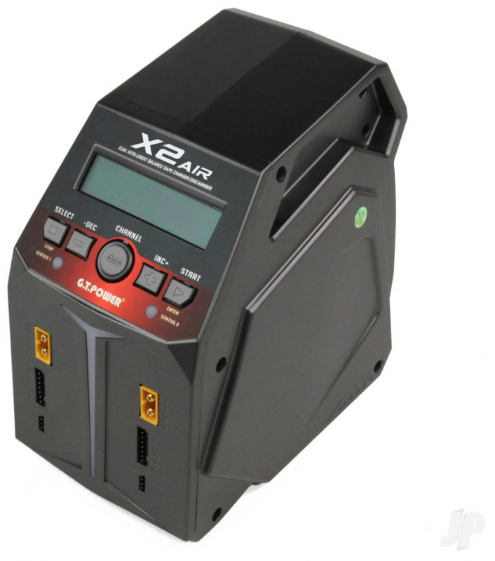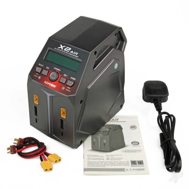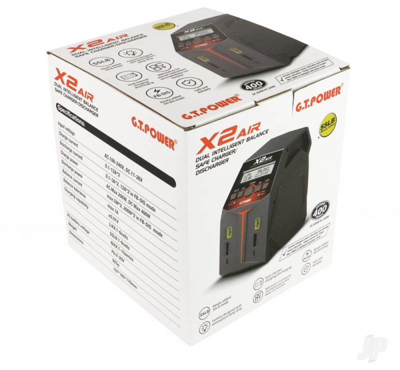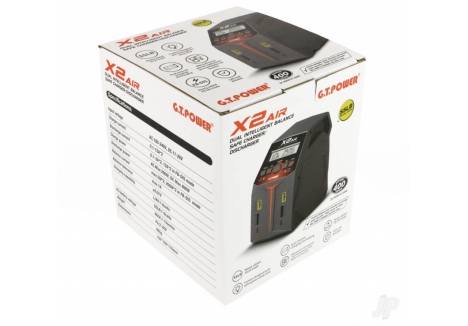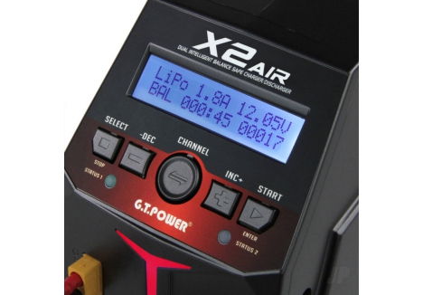 Charger manufacturers come and charger manufacturers go, however G.T. Power is here to stay. Widely regarded as providing the best quality battery charging and care devices available in the R/C world, its products have made many friends over the years and, indeed, the X2 Air is set only to increase the following. Offering an impressive 400W of DC charge power (200W AC) the X2 Air is able to charge batteries with a much higher amperage in far less time. With a choice of mains or 11-26V DC input, it's ideal for use both at home and at the field, track or lake. Moreover the backlit LCD makes it simple to select the charge parameters while also monitoring a battery's status in any light.