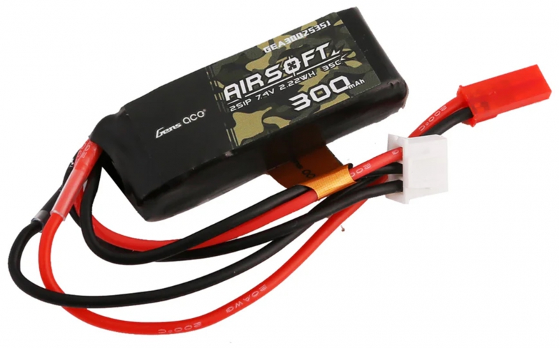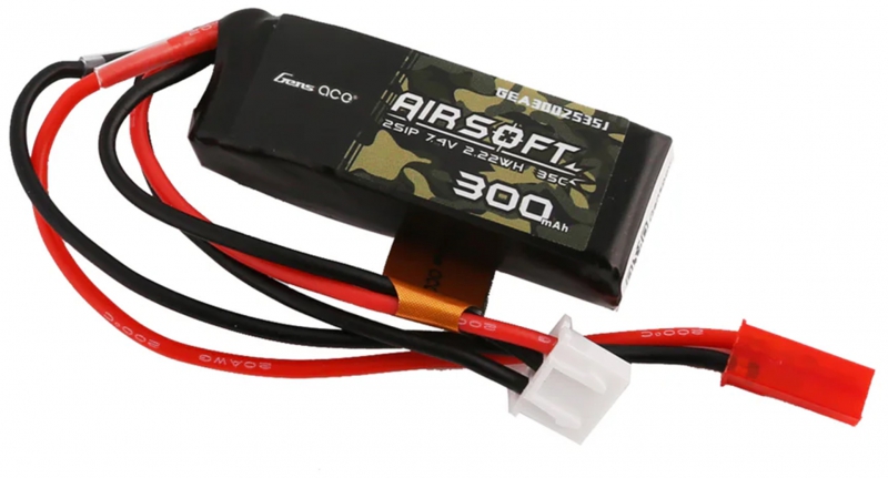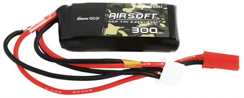 Gens ace 35C 300mAh 2S1P 7.4V Airsoft Gun Lipo Battery with JST-SYP Plug is designed specifically to power airsoft gun. Suitable for most AEG like M4;CM16 SCAR AR15 LE STOCK.