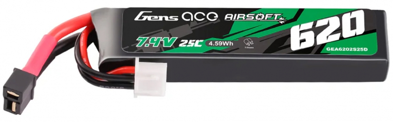 Gens Ace Lipo 620MAH 7.4V 25C 2S1P Airsoft Gun Lipo Battery with Mini Deans(T) Plug is suitable for Pistols