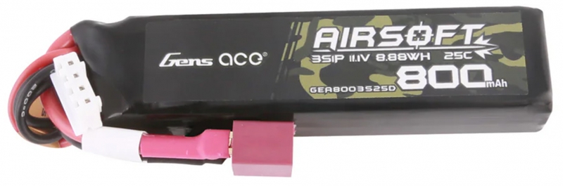 Application: Gens Ace Lipo 800MAH 11.1V 25C 3S1P Airsoft Gun Lipo Battery with T (Deans) Plug suitable for M4 Shorty guns.