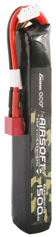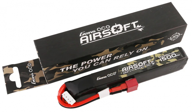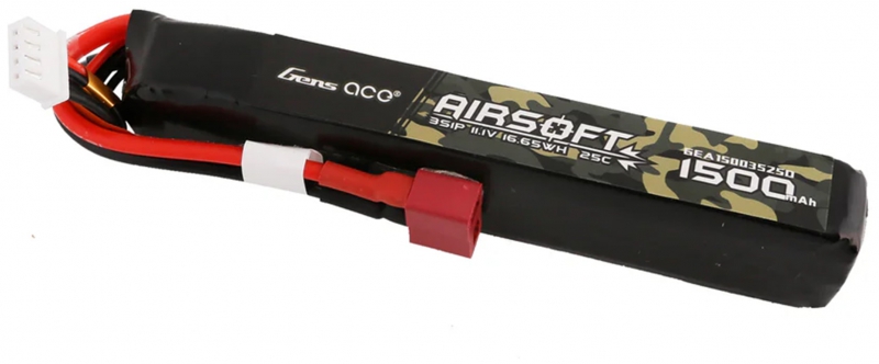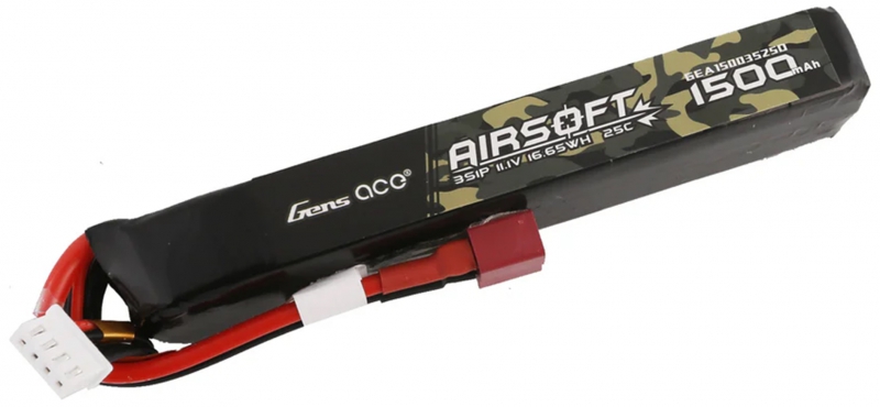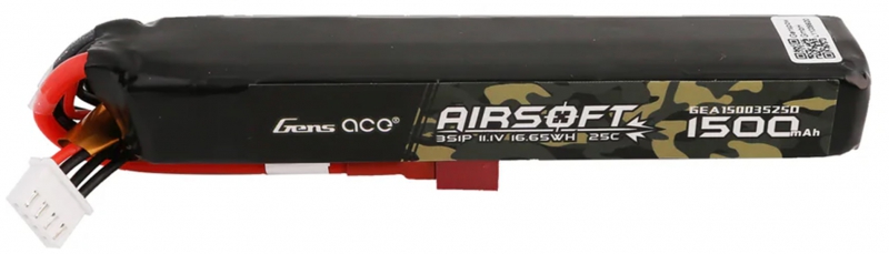 Gens ace 25C 1500mAh 3S1P 11.1V Airsoft Gun Lipo Battery with T Plug is designed specifically to power airsoft gun. Suitable for most AEG like M4;CM16 SCAR AR15 LE STOCK.